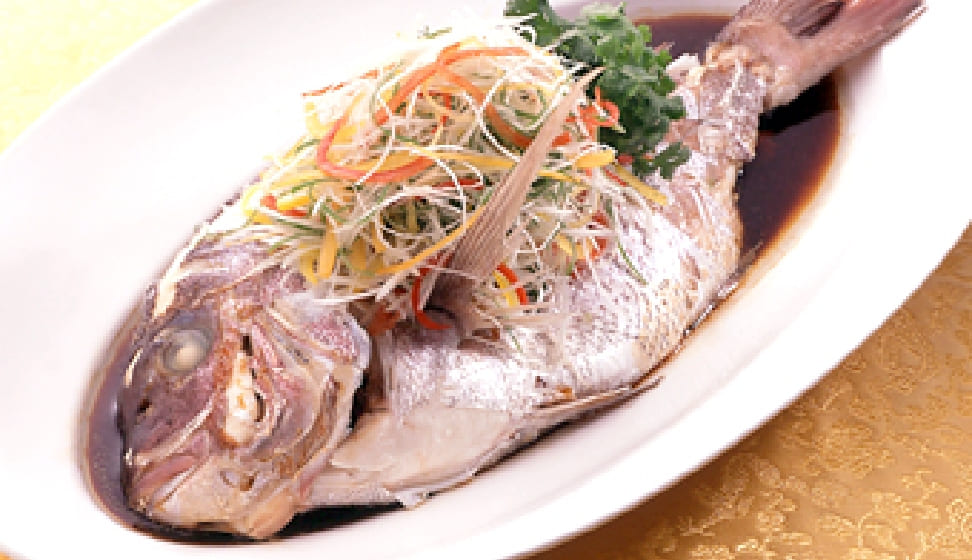 姿蒸しは、素材の美味しさを最大限に引き出す調理法。中国で「加吉魚」と称される鯛は、お祝いの席にふさわしい食材です。