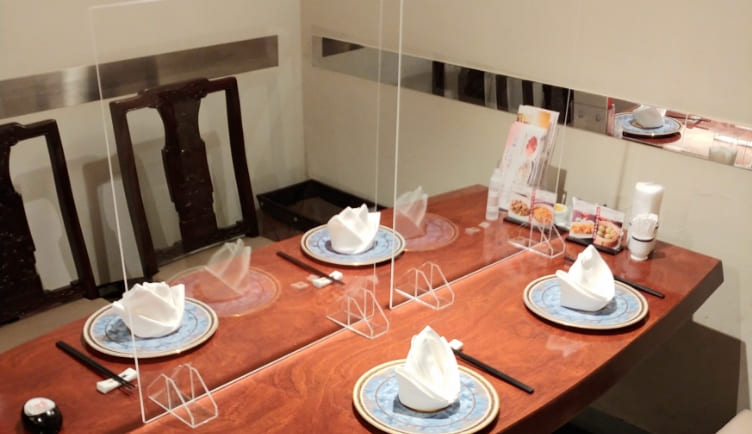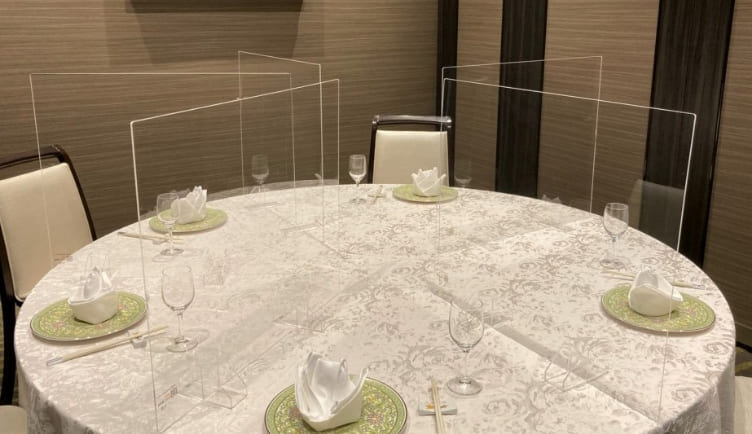 ●ご会食の際は、お部屋の広さや円卓の数、お席の間隔、アクリルパーテーションの設置など、お客さまのご要望に合わせて準備いたします。ご予約時にお申し付けください。