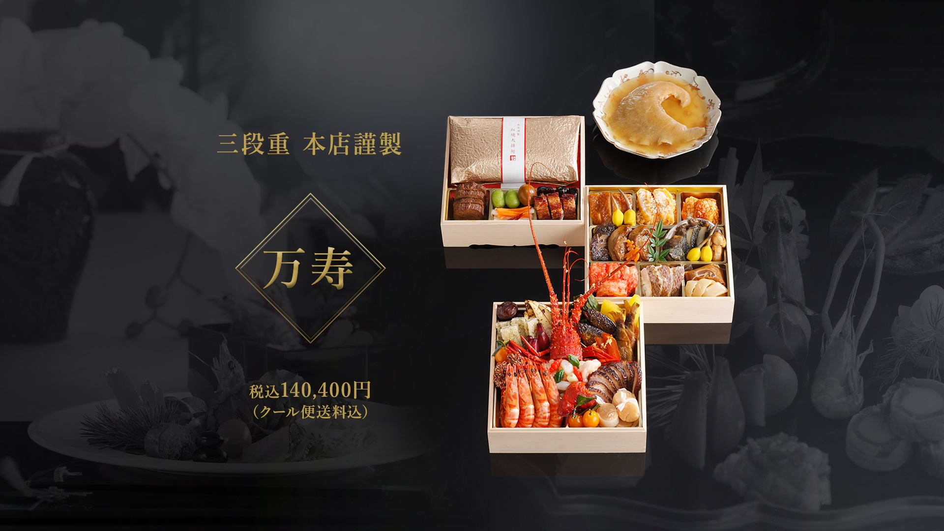 卓越した調理技術を生かし、銀座本店で丹念にお作りする風雅な三段重。