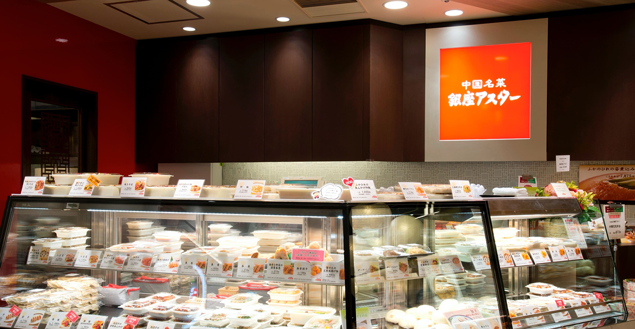 百貨店の地下食品売り場を中心に、お持ち帰り用商品の専門店「銀座アスター デリカショップ」を展開しています。
