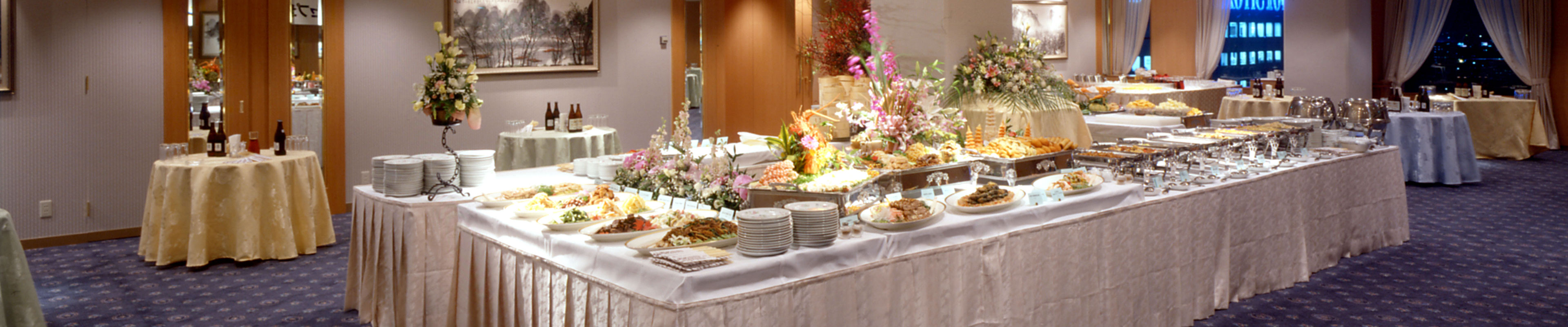 銀座アスターで人気のお料理を集めた立食形式のビュッフェプランです。周年パーティーや懇親会、忘新年会など様々なシーンでぜひご利用ください。