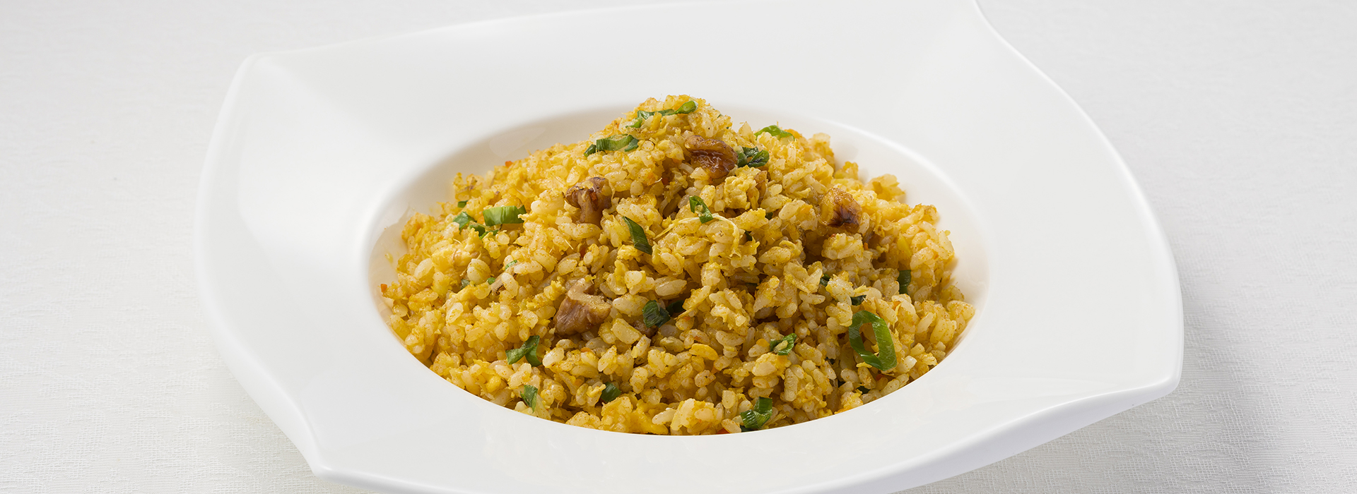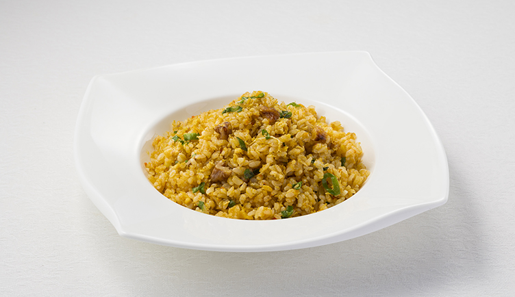 上海蟹のほぐし身と卵を加え、くるみとともに香り良く炒めた炒飯は、この時期だけの贅沢な一品です。季節の味覚をぜひお試しください。