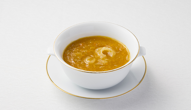 上海蟹のコクと風味がふかのひれを包む、濃厚な味わいのスープです。黒酢を途中で加えることで味の変化もお楽しみいただけます。
