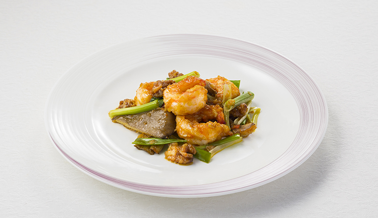 大海老と鮑茸を上海蟹とともに炒めました。芳醇で濃厚な上海蟹の香りとうま味をお楽しみいただけます。