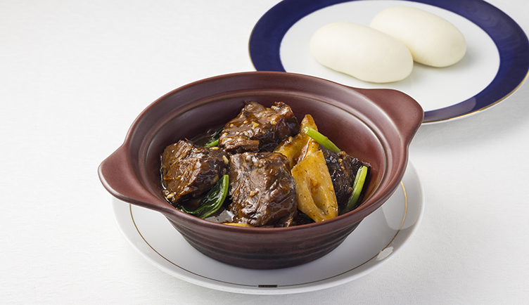 黒毛和牛のやわらか辛味煮込み、マントウ添え